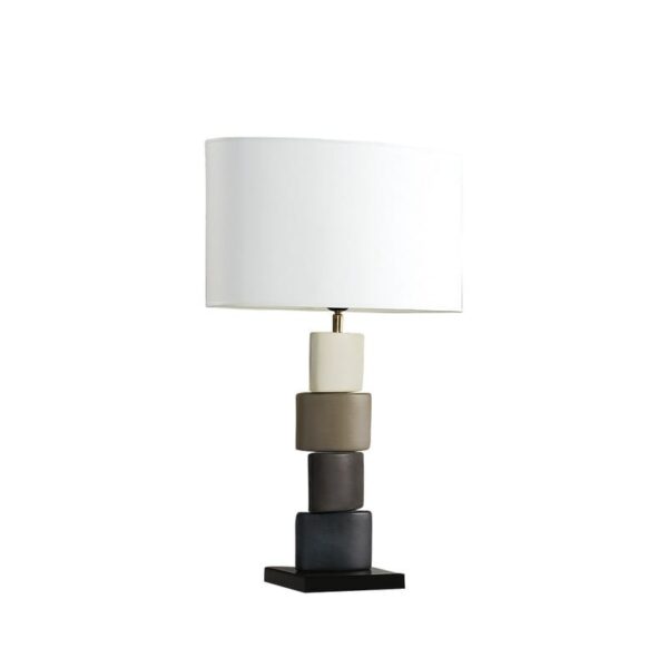 Lampe en céramique dégradé ivoire, marron et gris avec un abat-jour ovale ivoire.
